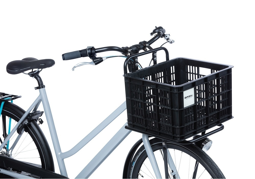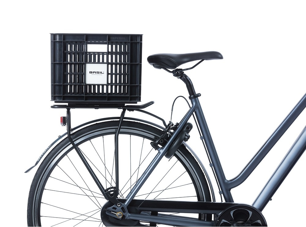 De praktische Basil fietskrat Crate M biedt genoeg ruimte voor het meenemen van een rugtas, boodschappentas of wat losse spullen. De krat is voorzien van een 'kratklikker'. Deze kratklikker met logo heeft een contrasterende kleur waardoor uw krat nog meer opvalt.