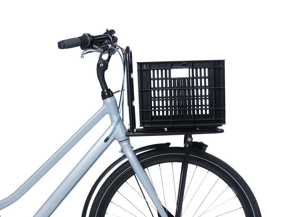 Deze hippe fietskrat is ook verkrijgbaar in andere kleuren en maten en ook zonder een voorgemonteerde adapterplaat.