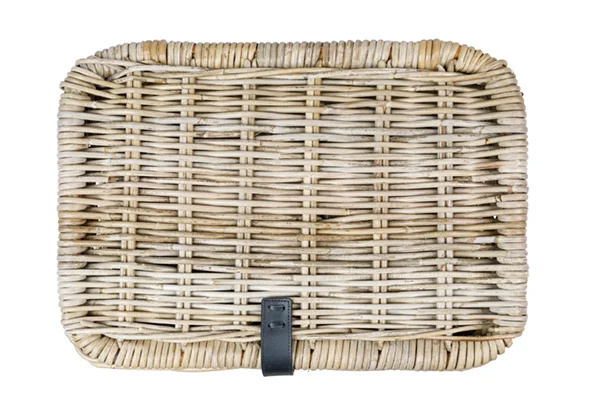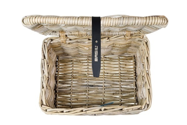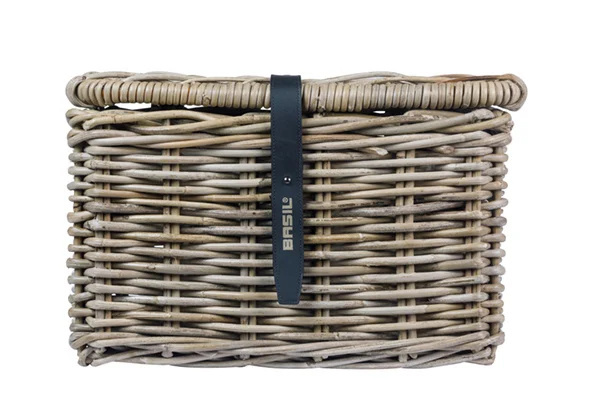 Naast fietstassen en fietskratten levert Basil ook hippe en fraaie fietsmanden. Zoals deze compacte grijze fietsmand met klep, gemaakt van sterk rotan. De Dax in maat S heeft een inhoud van ongeveer 16 liter. De mand heeft een handig deksel met lederen sluiting, om uw spullen veilig en beschermd te vervoeren.