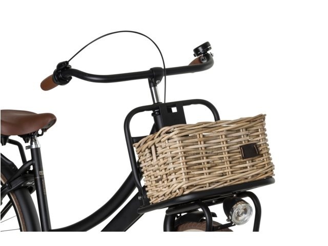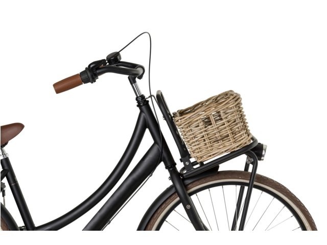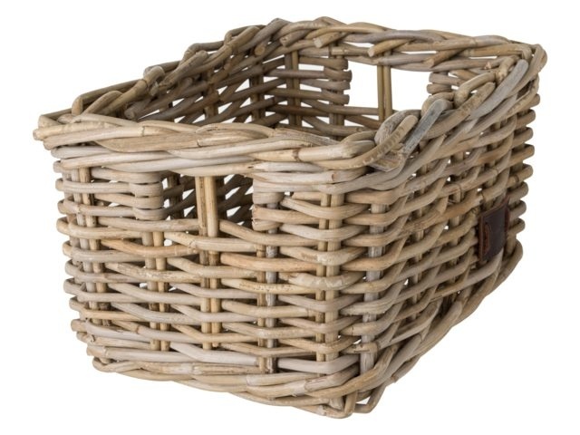 Deze compacte rotan fietsmand meet 31 x 24 x 18 centimeter en heeft een inhoud van 8 liter. De mand weegt (zonder inhoud) ongeveer 600 gram en wordt geleverd met 4 tiewraps voor bevestiging aan de voordrager.