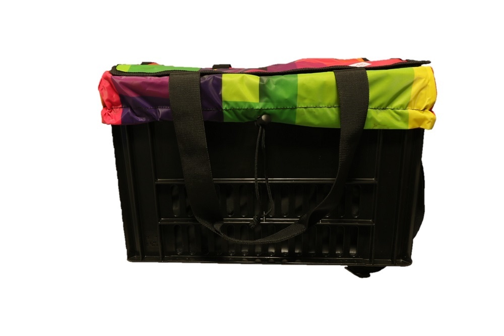 Met de Hooodie Crate Krattas neemt u voortaan heel makkelijk uw spullen mee in uw fietskrat. Deze vrolijk gekleurde, rechthoekige tas zet u in uw krat. Doordat deze tas afsluitbaar is, blijven uw spullen beschermd tegen weer en wind.