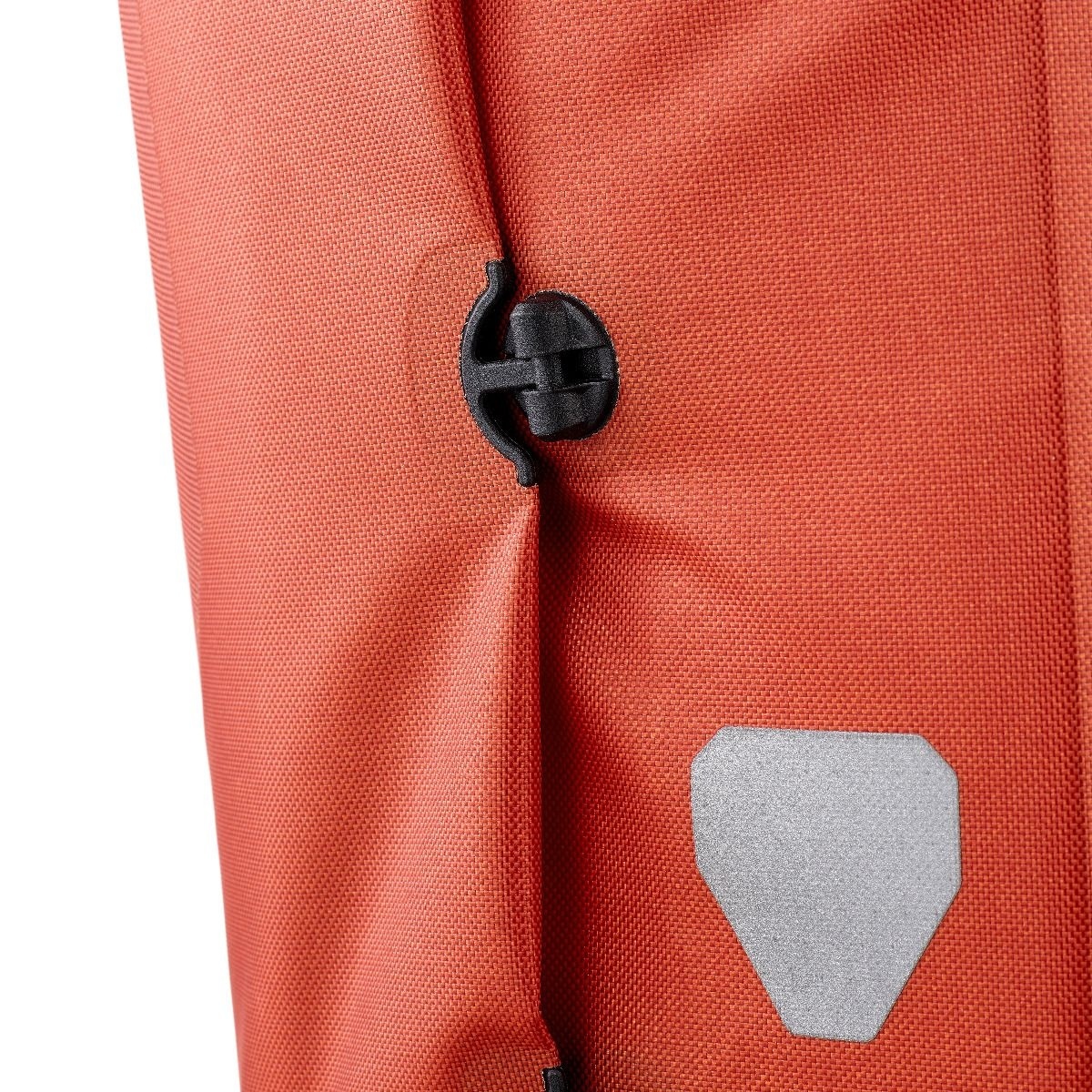 Om de tas 100% stof- en waterdicht te maken (beschermingsgraad IP64), moet de rolsluiting ten minste 3 tot 4 keer worden opgerold. Op de zijkanten van de tas is reflectie aangebracht, voor een goede zichtbaarheid in het donker.