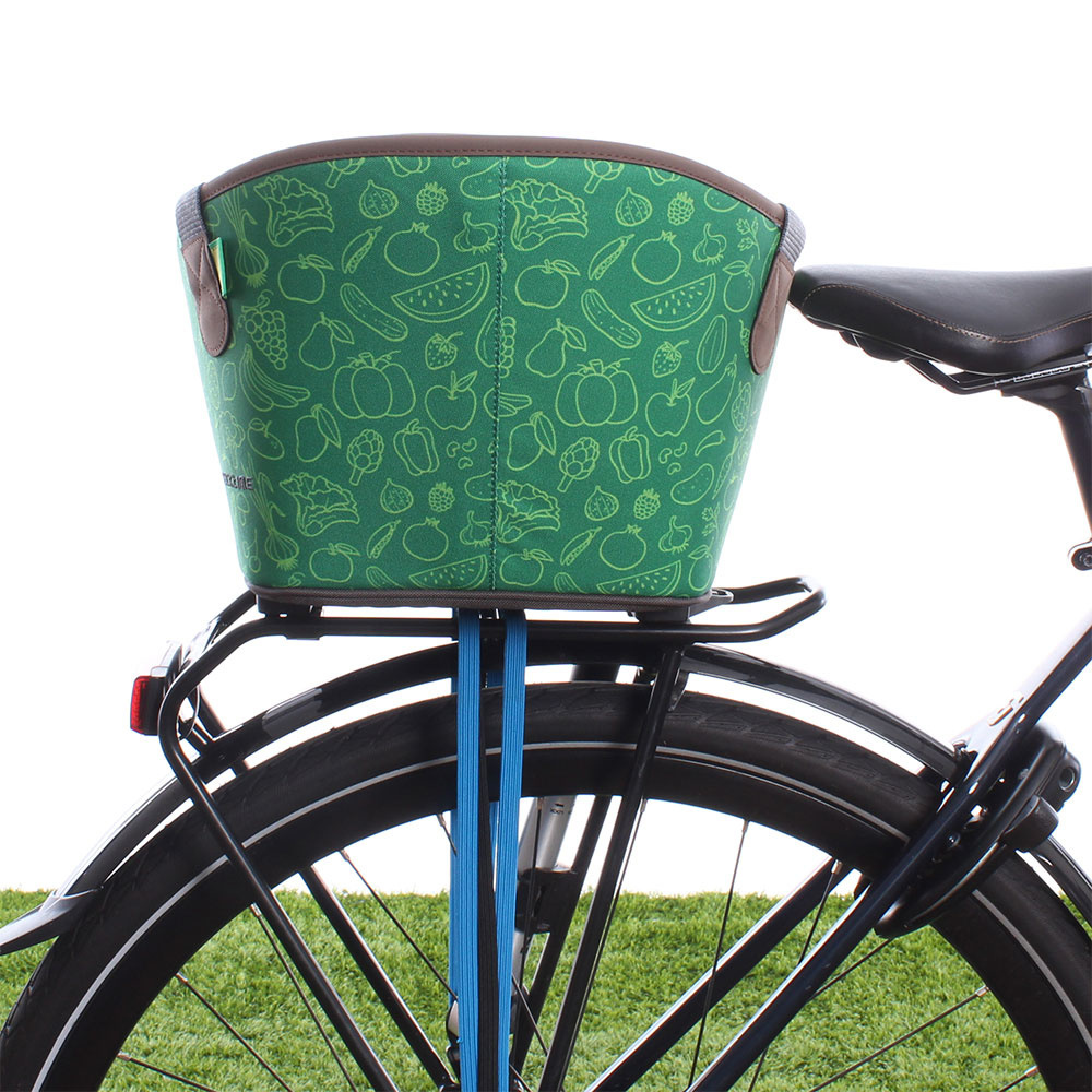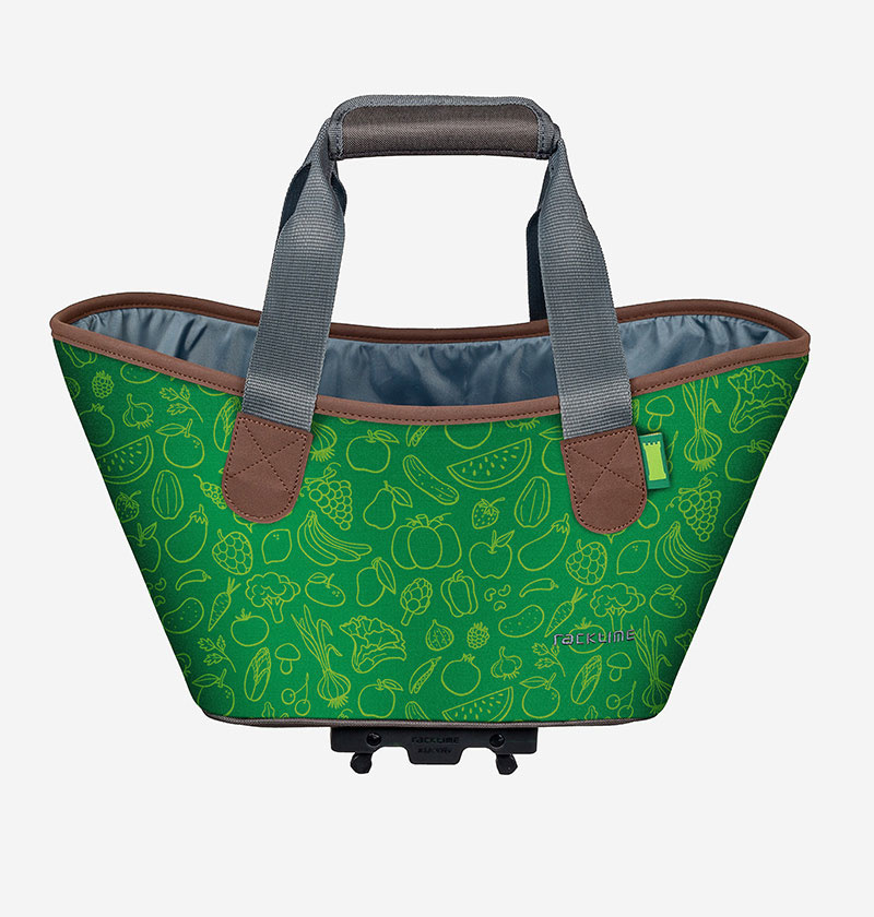 De fietsmand/fietstas Agnetha weegt bijna niets en u kunt er lekker veel in kwijt. Een praktische en leuke boodschappentas met een inhoud van 15 liter, in de groene uitvoering 'Veggie' met een fruit- en groenteprint. U bevestigt de tas gemakkelijk met de Snap-it adapter op een Racktime bagagedrager.
