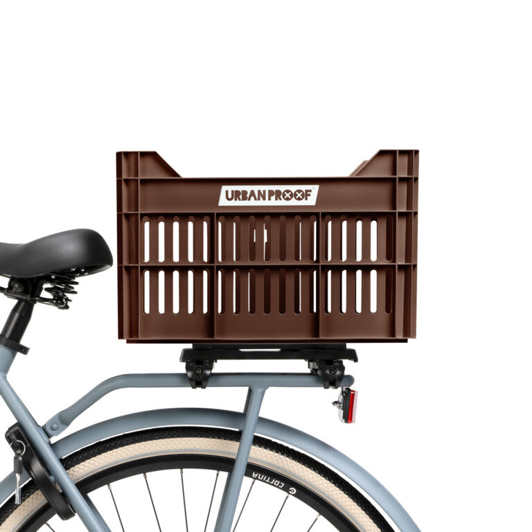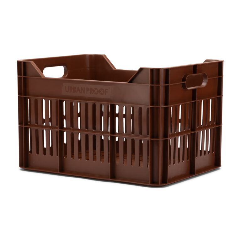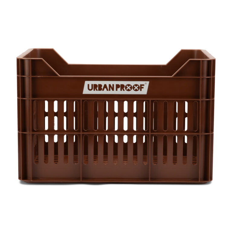 Deze duurzame bruine fietskrat van het Amsterdamse merk Urban Proof is gemaakt van gerecycled plastic en geproduceerd in Europa voor een kleinere ecologische voetafdruk. De vernieuwde, gemoderniseerde fietskrat heeft op de voorkant een nieuw logo met reflectie en een uitsparing om een fietslampje te plaatsen. De fietskrat is geschikt voor elke fiets en e-bike met een bagagedrager.