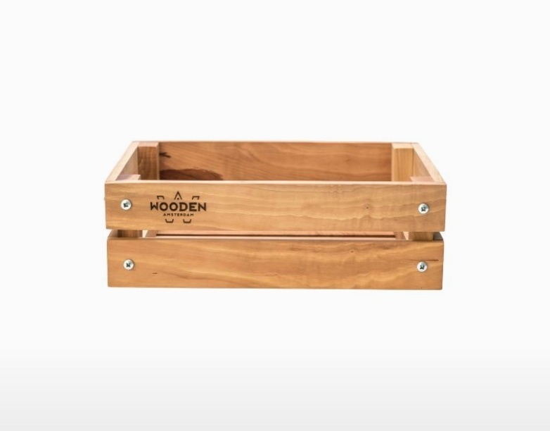 De krat is behalve als fietskrat ook te gebruiken als houten opbergkistje!